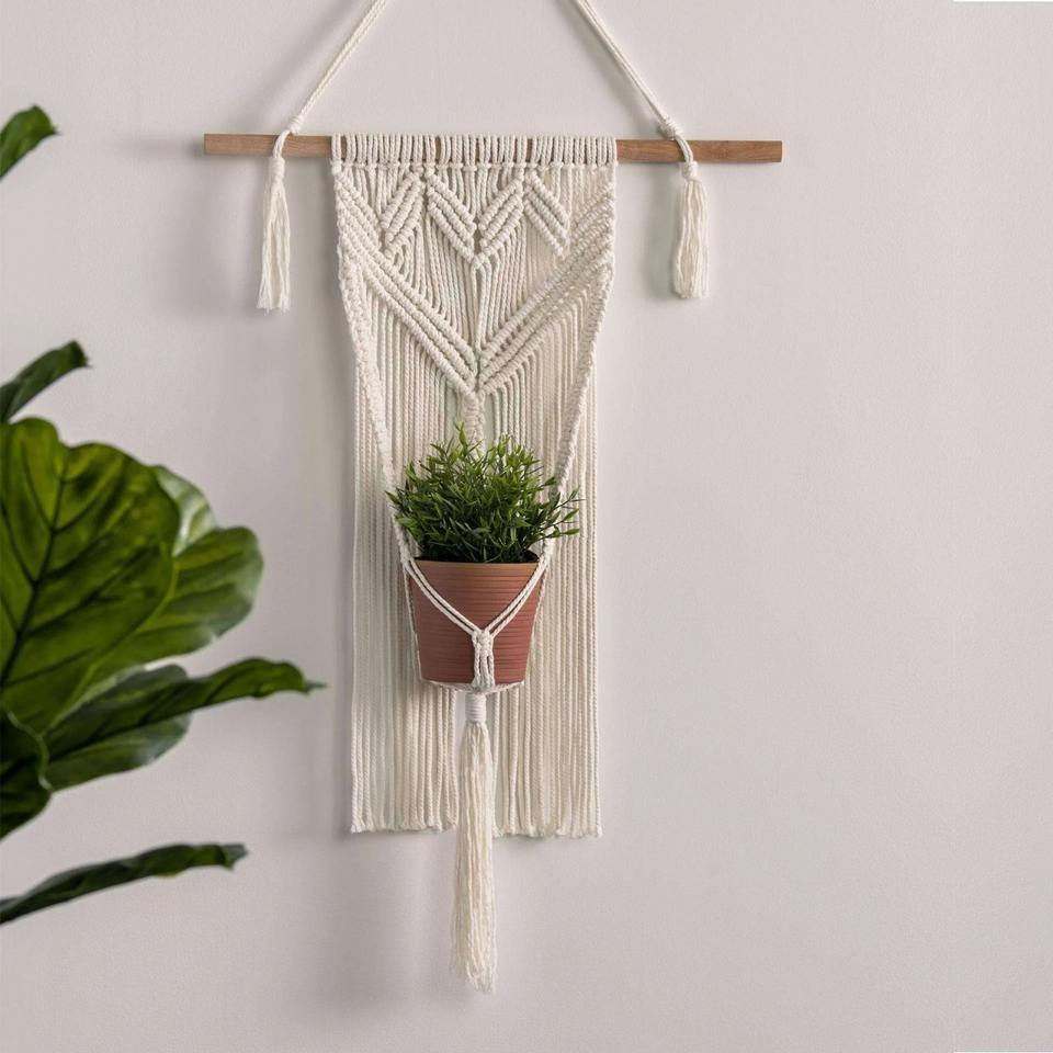 Macrame ที่แขวนต้นไม้แขวนผนังสำหรับกระถางขนาดเล็กงานแฮนด์เมด macrame ของตกแต่งผนังบ้านที่มีสไตล์จากอินเดีย