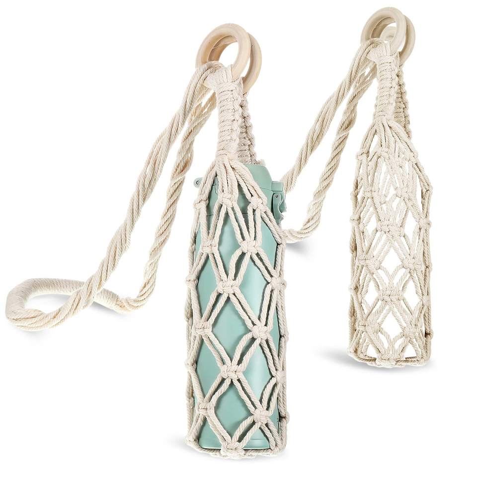 ที่วางขวดน้ำ macrame กระเป๋าสลิงน้ำกระเป๋าใส่ขวด macrame สำหรับกลางแจ้งสไตล์โบฮีเมียน