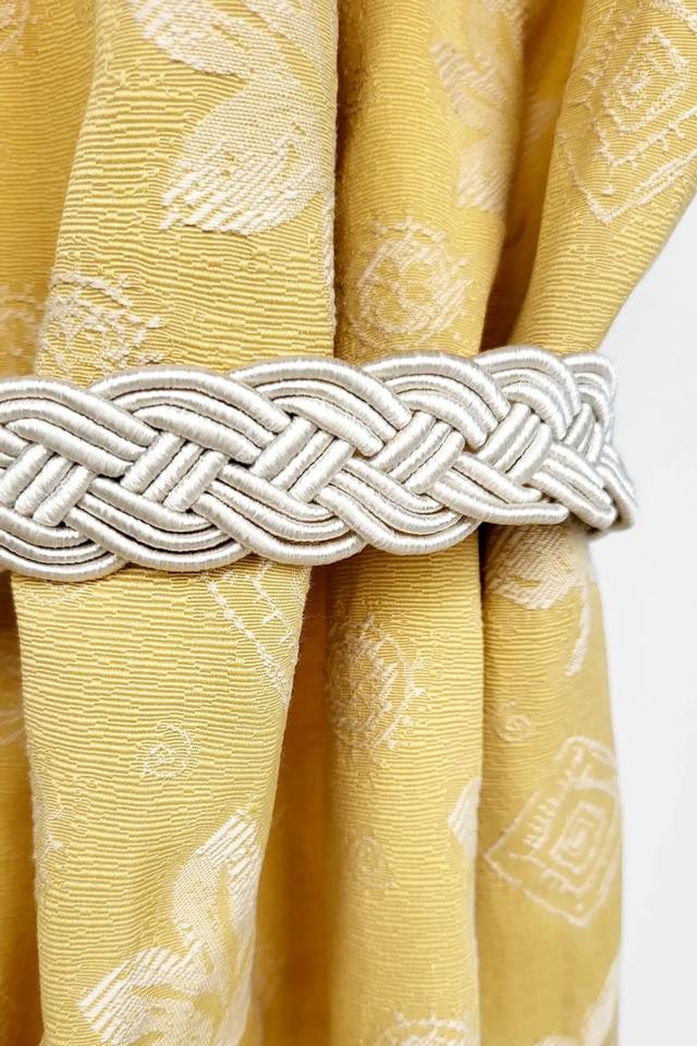 Macrame ผ้าม่านถักแบบผูกด้านหลังสไตล์วินเทจสำหรับตกแต่งเชือกถักแบบแบนเชือกผูกผ้าม่าน