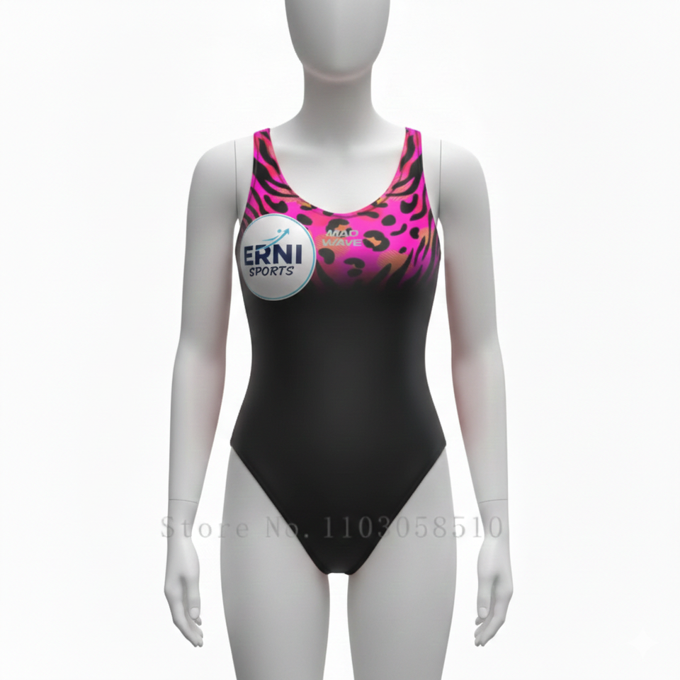 ชุดว่ายน้ำสำหรับนักกีฬาหญิง Mad Wave แบบชิ้นเดียว สวมใส่สบาย ลายดอกไม้ โลโก้ด้านหน้า คอเว้าหลัง ผลิตจากโพลีเอสเตอร์ 100%