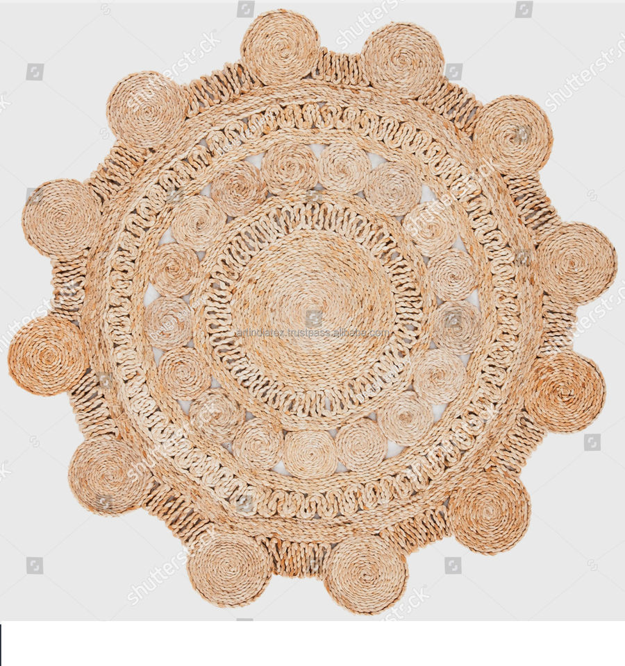 ผลิตจากพรมปอกระเจาธรรมชาติ 100% พรมป่านกลมพรมปอกระเจาถักอินเดียสําหรับห้องนั่งเล่นห้องนอน