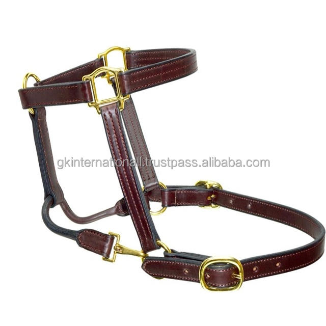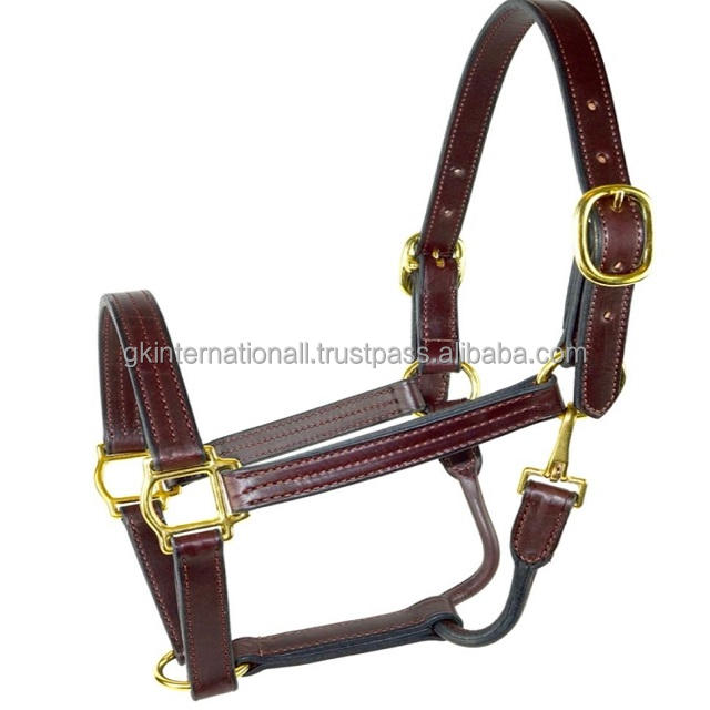 ทำจากหนังอินเดียที่ดีที่สุดเชือกแขวนคอหนังม้าเย็บสามชิ้นพร้อมอุปกรณ์ทองเหลืองและคอม้วน