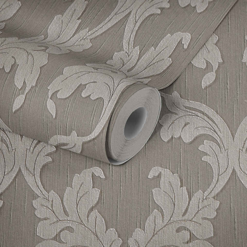 วอลเปเปอร์ลายดามัสก์สีเทาเบจทันสมัย ผลิตในเยอรมนี ไม่ใช้วัสดุผ้าทอ ทนทานต่อการซัก สำหรับห้องนั่งเล่นและห้องครัว มีสินค้าในสต็อก