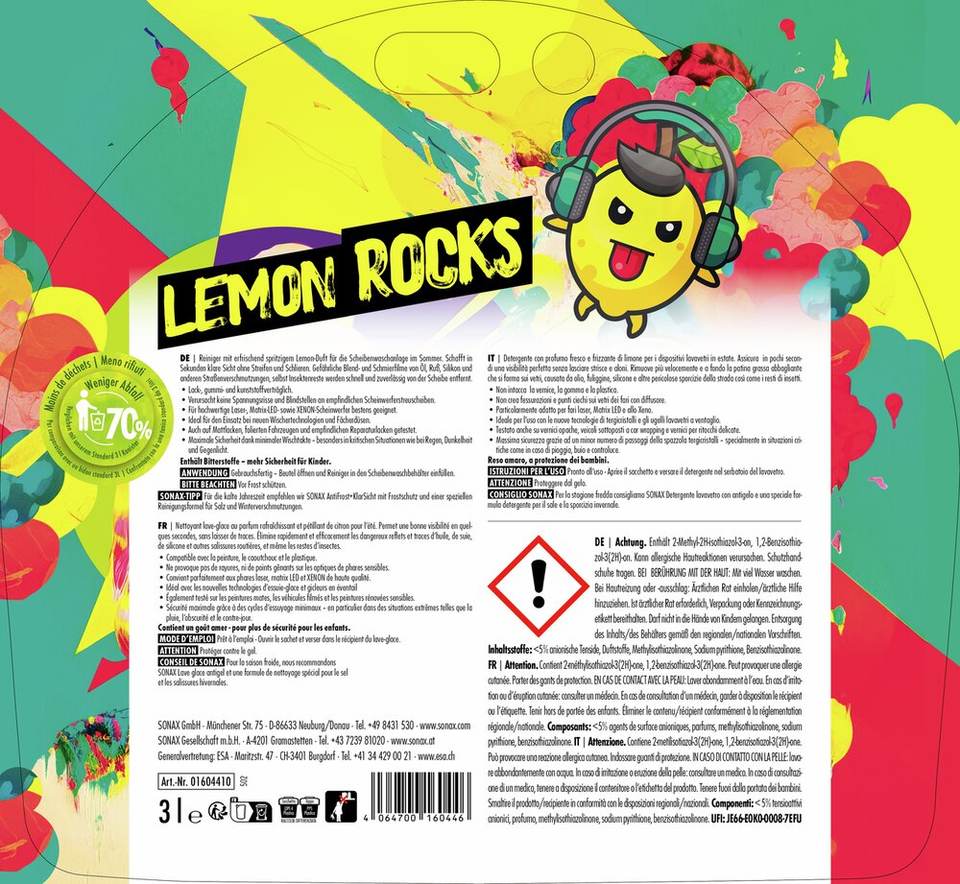 น้ำยาทำความสะอาดกระจกรถยนต์ ผลิตในเยอรมนี พร้อมใช้ กลิ่นเลมอนร็อค (3 ลิตร)