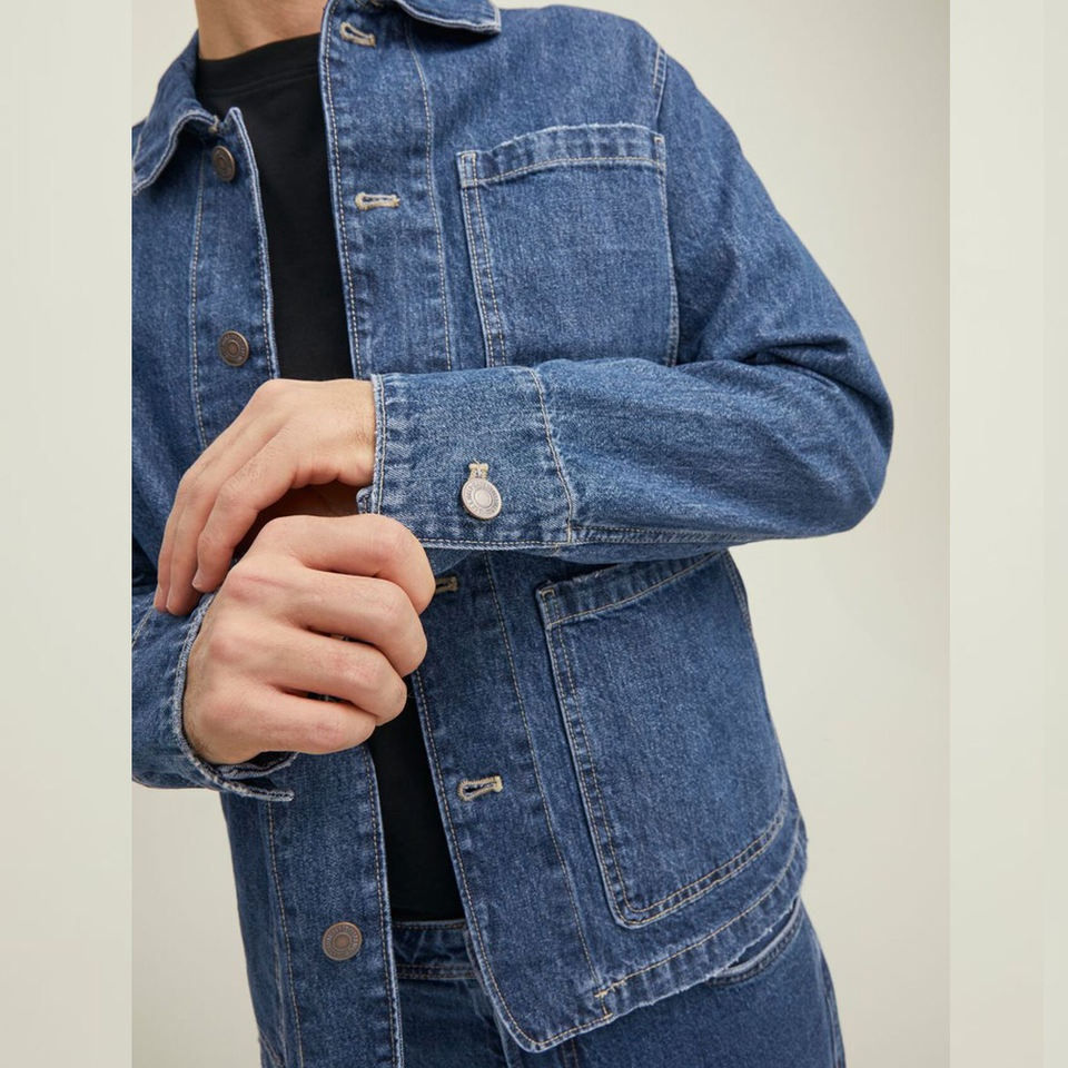 แจ็คเก็ตยีนส์คุณภาพสูง สีพื้น แจ็คเก็ตยีนส์ลำลอง กระดุมปิด แจ็คเก็ตยีนส์ผู้ชาย