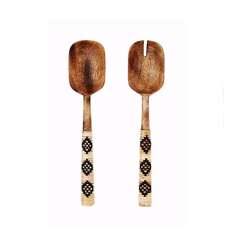 ช้อนไม้ทำในอินเดีย ประดับด้วยเรซิ่น เป็นมิตรกับสิ่งแวดล้อม ใช้กับเครื่องล้างจานได้ อุปกรณ์สำหรับสลัด ใช้ในครัวเรือน ผลิตในอินเดีย