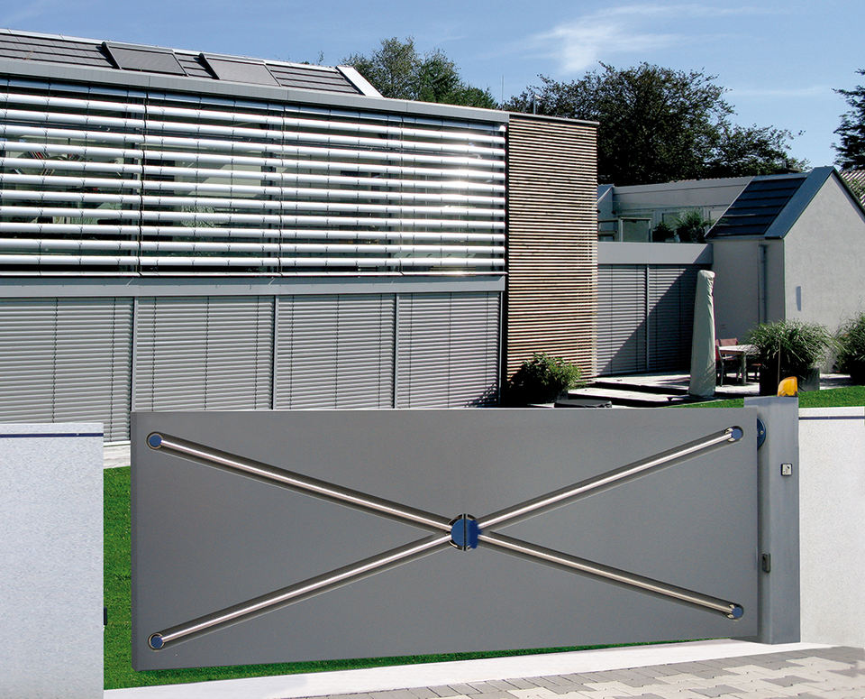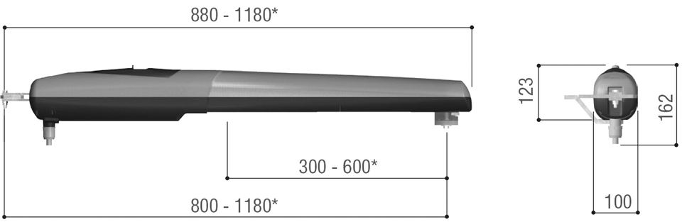 ผลิตในอิตาลี ชุดมอเตอร์ AXO จำนวน 2 ตัว แบบยืดหดได้ 24 โวลต์ สำหรับประตูสวิง พร้อมอุปกรณ์เสริม