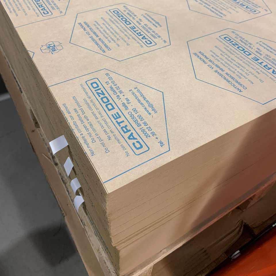 ผลิตในอิตาลี กระดาษ VCI ยี่ห้อ Carte Dozio สำหรับบรรจุภัณฑ์อุตสาหกรรม ป้องกันการกัดกร่อนของโลหะ