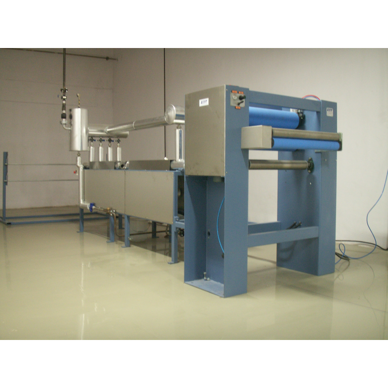 Single battery of steaming, and heat-setting by steam, tubes with 4 different dia. for fabric widths.
