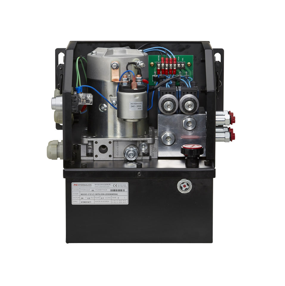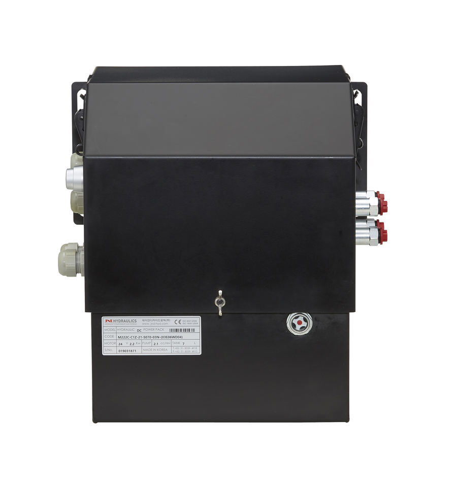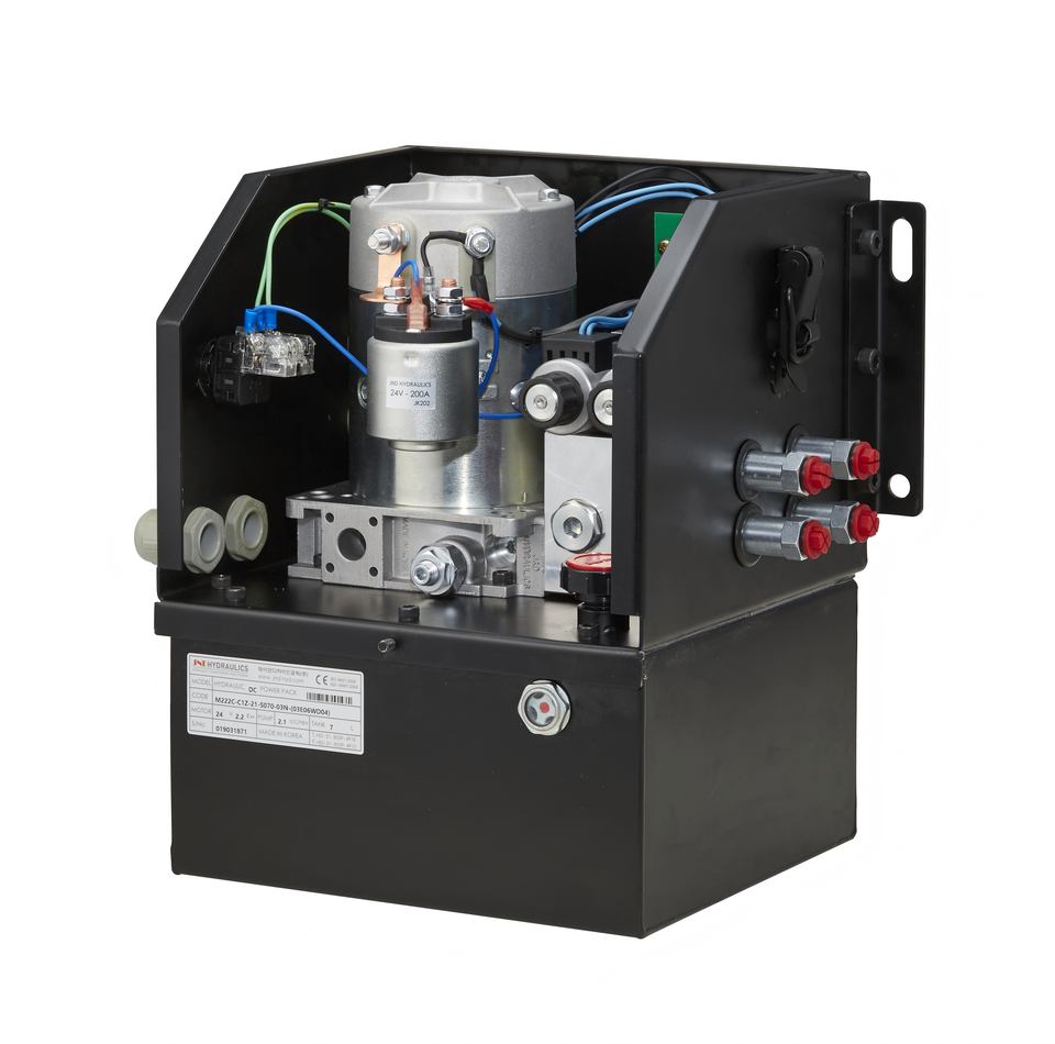 ชุดเครื่องยนต์ไฮดรอลิกผลิตในเกาหลี พร้อมมอเตอร์ไฟฟ้า สำหรับประตูยกของรถบรรทุกและงานหนัก โครงสร้างแข็งแรงทนทาน