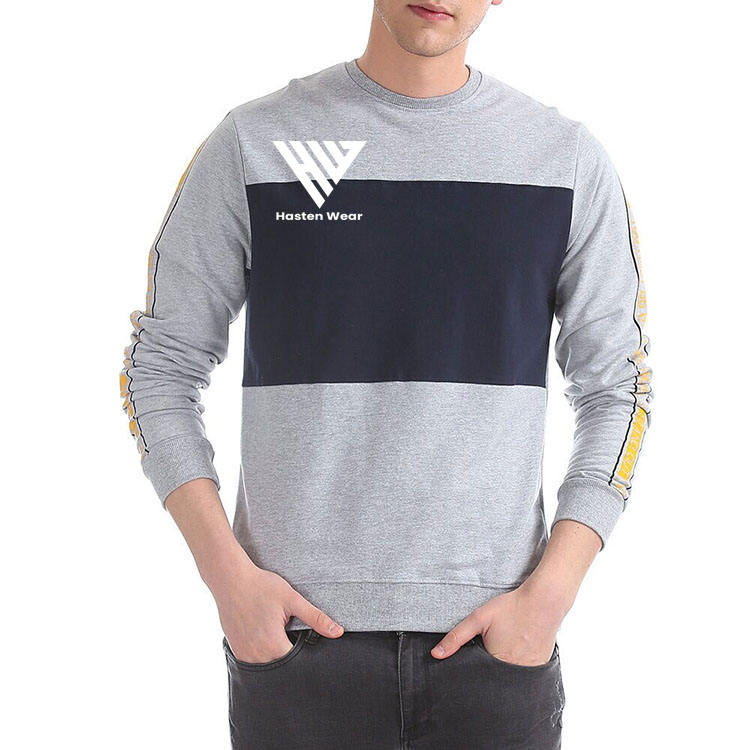 สเวตเชิ้ตทรงพอดีตัวสำหรับผู้ชาย, สเวตเชิ้ตลำลองคอกลมผ้าฝ้ายผสมลายทางแฟชั่นใหม่ปากีสถาน