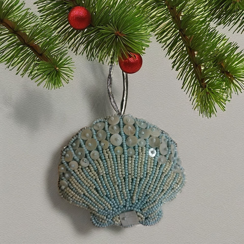 งานปักลูกปัดสีทองซาริทำด้วยมือเป็นมิตรต่อสิ่งแวดล้อมของตกแต่งบ้านในอินเดียแขวนต้นคริสต์มาสที่สวยงาม