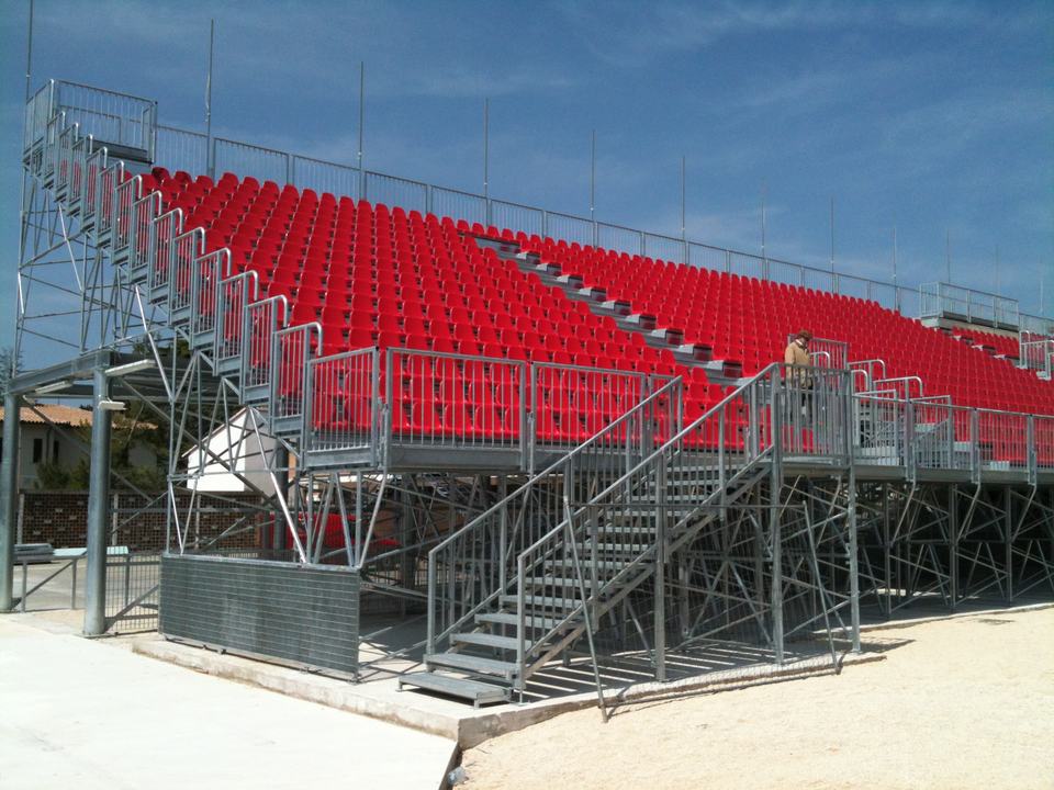 อัฒจันทร์สนามเบสบอลกลางแจ้งแบบกำหนดเอง ผลิตในอิตาลี CETA G2M/1 ทำจากเหล็กชุบสังกะสีแบบจุ่มร้อน ทนทาน พร้อมระบบเชื่อมอัตโนมัติ