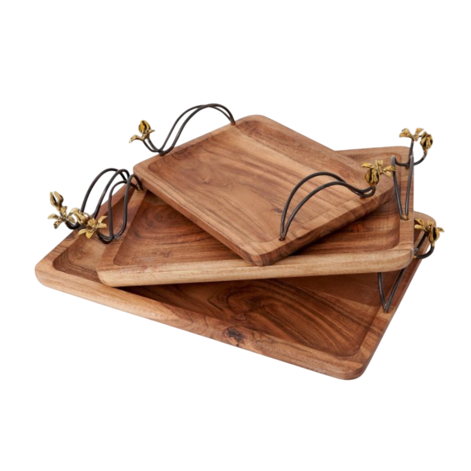 ถาดเสิร์ฟอาหารทำจากไม้พร้อมด้ามจับดีไซน์ใบถาดเสิร์ฟอาหารสุดหรูถาดเสิร์ฟของหวานของหวาน