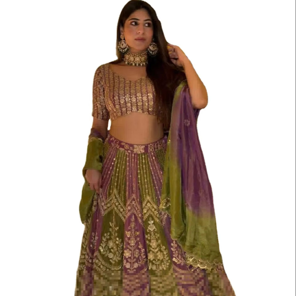 ทำจากผ้าไหมแท้มันมีลวดลาย zari ปักด้วยมือทำให้ดูสง่างามดูสวยงาม lahenga choli กับ dupatta