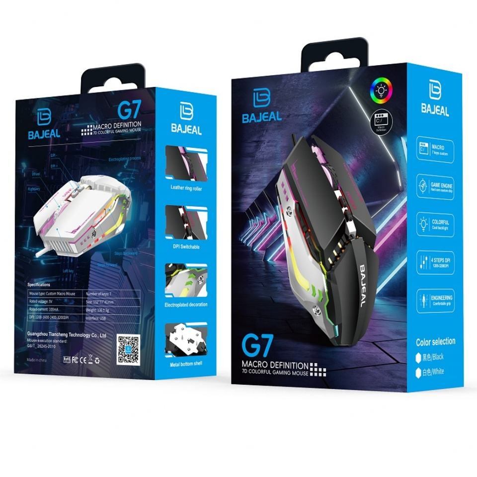 เมาส์เกมมิ่ง Bajeal DPI สูง ปรับแต่งได้ 7 ปุ่ม ออกแบบตามหลักสรีรศาสตร์ ไฟ RGB แบบมีสาย USB รับประกัน 12 เดือน ใช้ได้ทั้งมือซ้ายและขวา ผลิตในจีน ได้รับมาตรฐาน CE