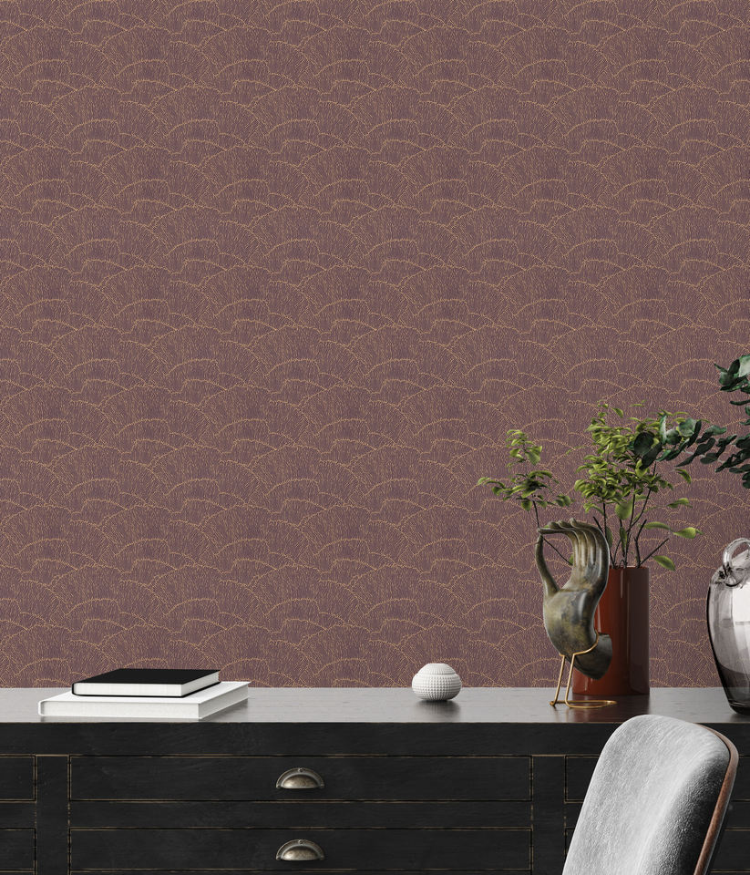 วอลล์เปเปอร์ม้วนหรูหราทำจากโลหะสีแดงทองไม่ทอสัญญาวอลล์เปเปอร์โลหะ-10,05x0,53เมตร