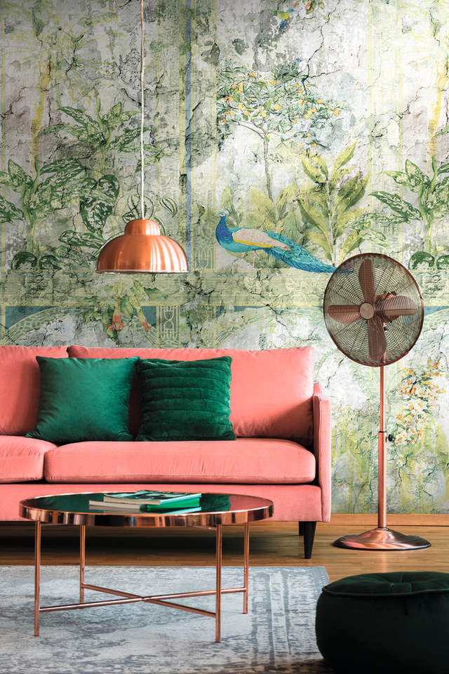 ทำในเยอรมนีภาพจิตรกรรมฝาผนังวอลล์เปเปอร์ภาพวินเทจสีเขียวสีฟ้าสีเทาไม่ทอไวนิลผนังสำหรับกลุ่มโรงแรม-2,80x1,59เมตร
