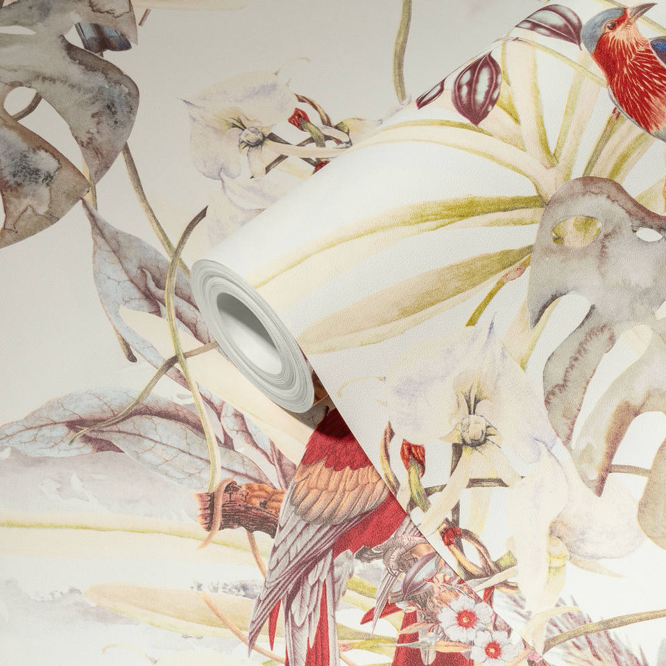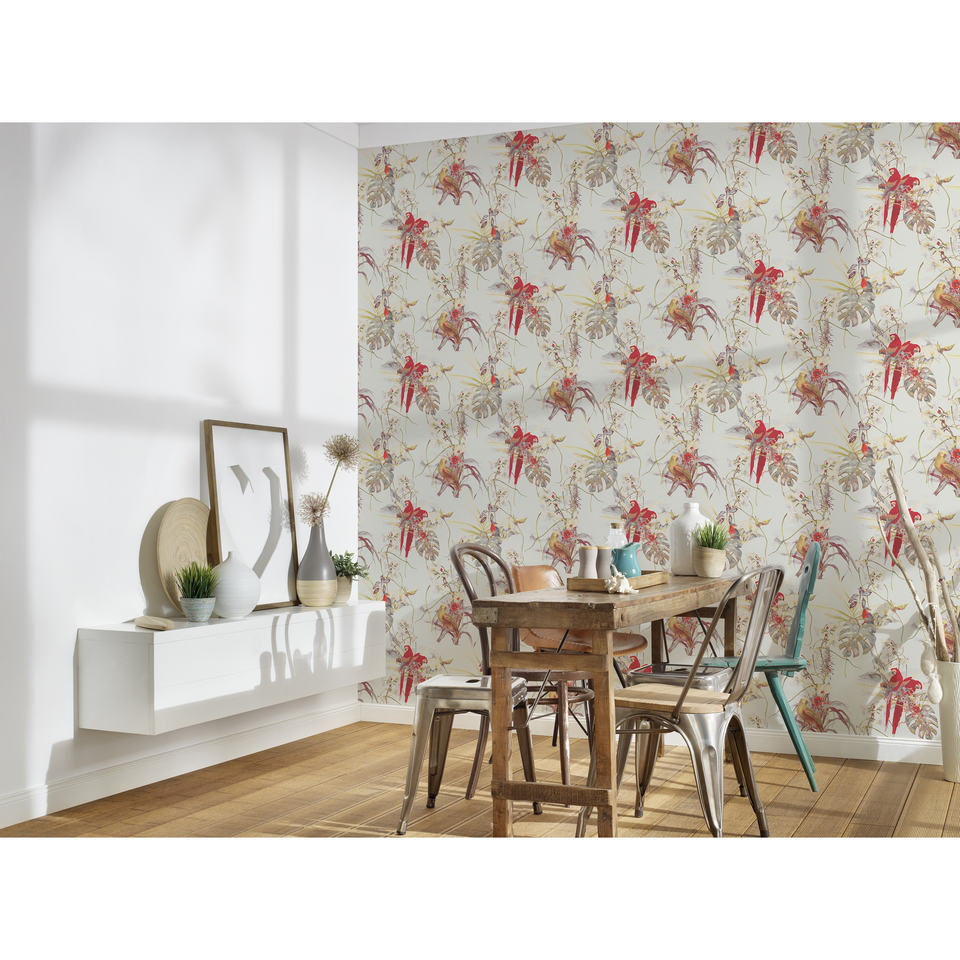 วอลล์เปเปอร์นกม้วนสีส้มสีเบจสีขาว-ไวนิลไม่ทอ-วอลล์เปเปอร์ตกแต่งบ้านตกแต่งผนัง