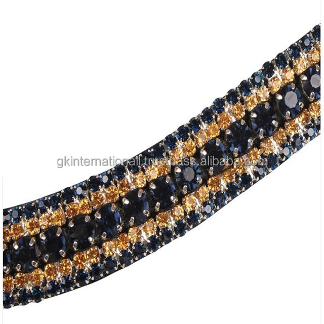 สายรัดและอานม้าทำจากหนังแท้ดีไซน์โซ่ขนาดใหญ่ประดับคริสตัลแบบหรูหราคุณภาพสูงผลิตในอินเดีย