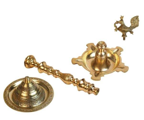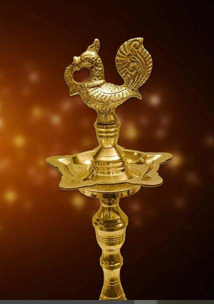 ขาตั้งโคมไฟทองเหลืองทรงนกยูงทำในอินเดียแบบดั้งเดิม