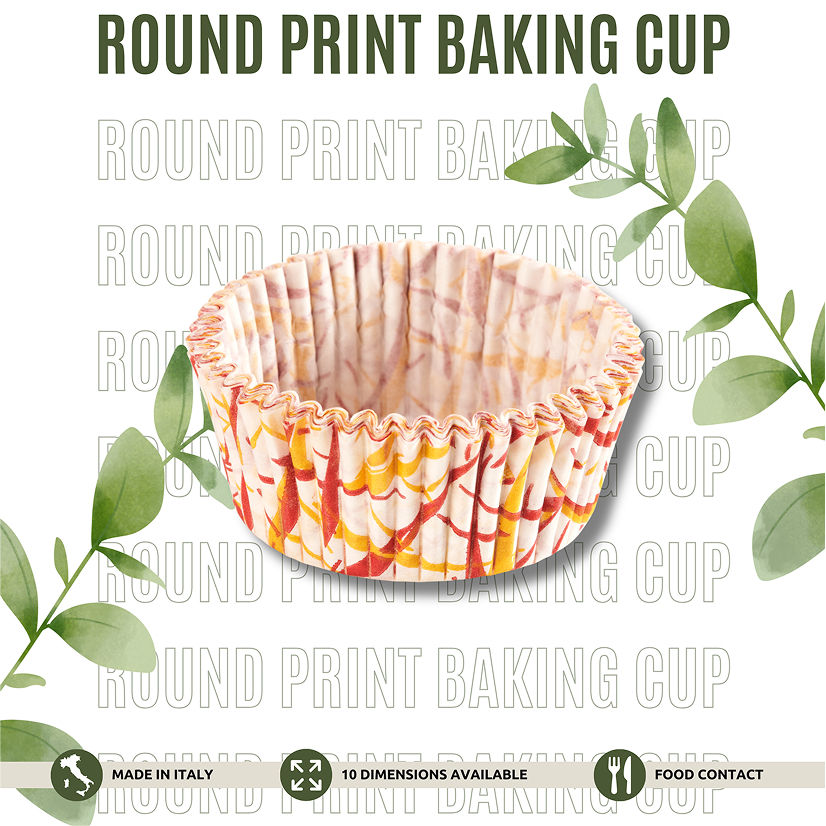 กระดาษกันไขมันแบบใช้แล้วทิ้งทรงกลมพร้อมถ้วยอบคัพเค้กสีขาวพิมพ์ลายขนาดแตกต่างกัน