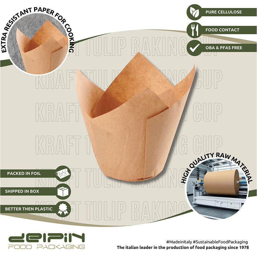 กระดาษกันไขมันแบบใช้แล้วทิ้งกระดาษคราฟท์ทิวลิปคัพเค้กขนาดแตกต่างกันผลิตในอิตาลี