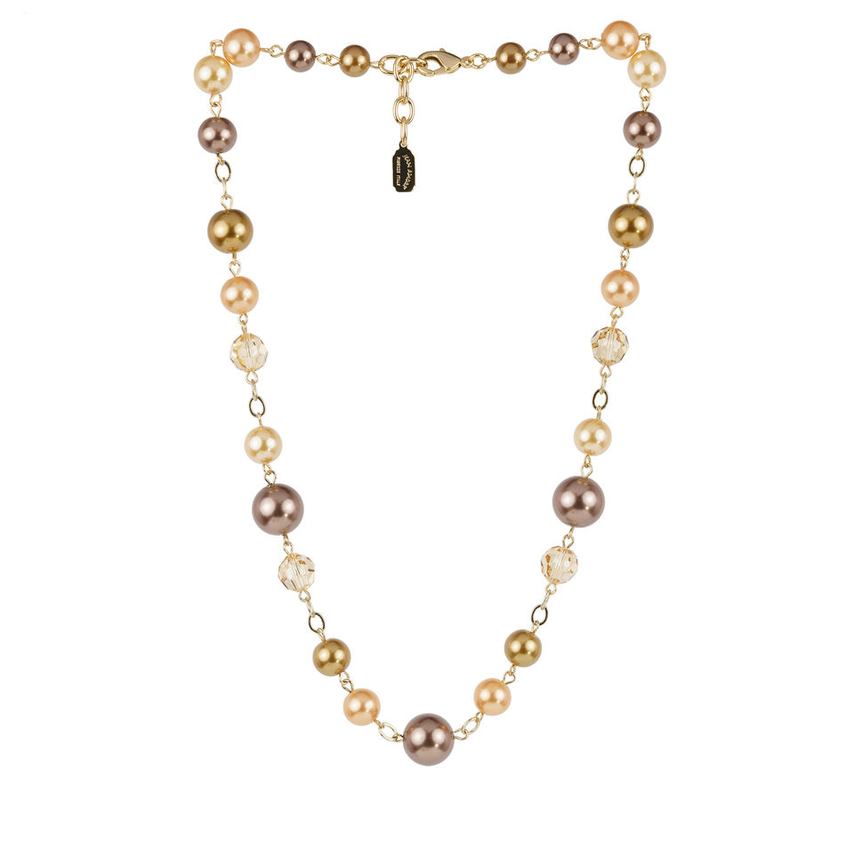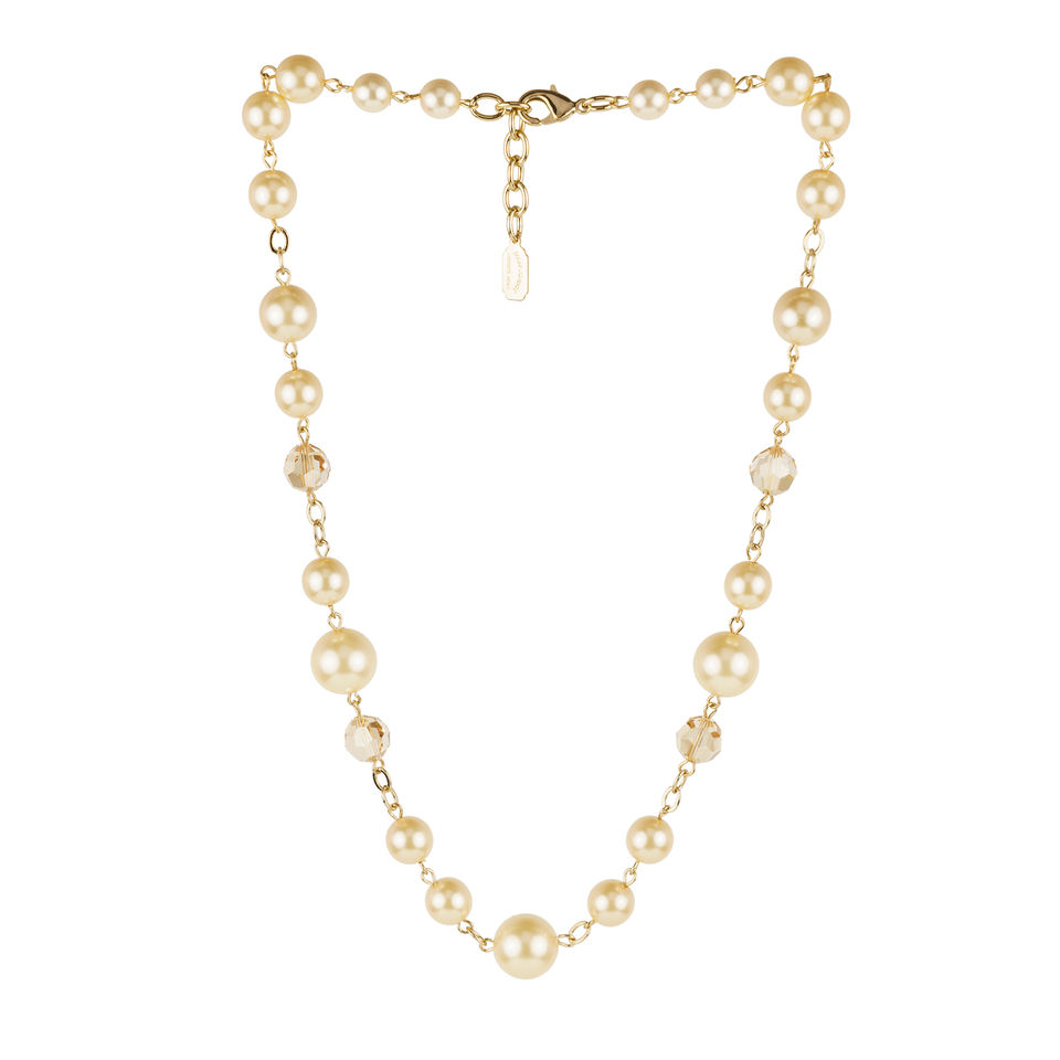 สร้อยคอทำมือสำหรับผู้หญิง ผลิตในอิตาลี ขนาด 48 ซม. ประดับมุกและลูกปัดแก้ว ชุบทอง 18K