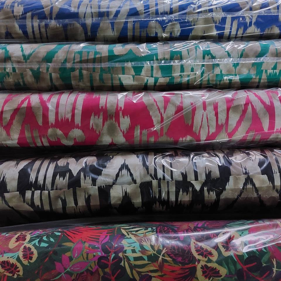 ผลิตในเกาหลี ผ้าโพลีเอสเตอร์ 95% สแปนเด็กซ์ 5% ผ้าพิมพ์ลาย ITY สต็อกล็อต ผ้าทอ ลายดอกไม้หลากหลาย คุณภาพดีเยี่ยม ดีไซน์สวยงาม
