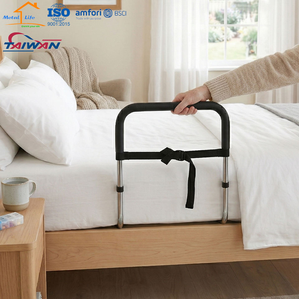 ผลิตในไต้หวัน โรงงานได้รับการรับรองมาตรฐาน ISO9001 ราวจับข้างเตียงปรับระดับได้สำหรับผู้สูงอายุใช้ในครัวเรือน