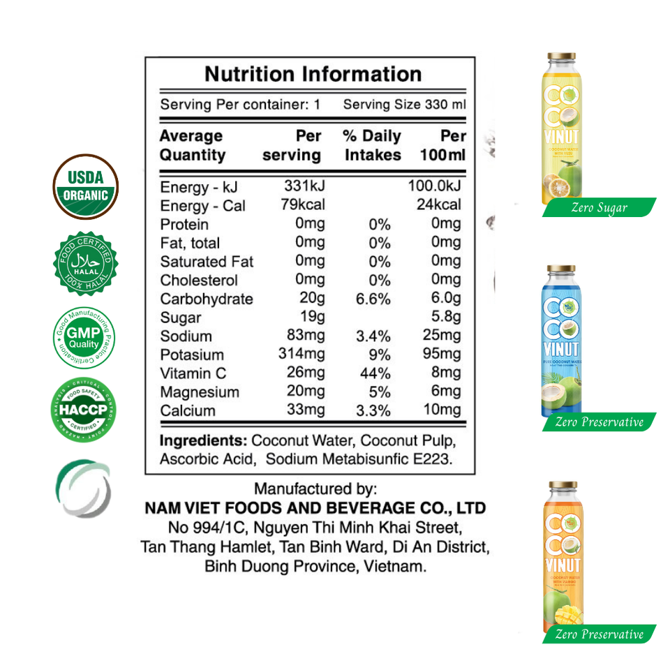 ส่วนผสมหลัก:น้ำมะพร้าวบริสุทธิ์