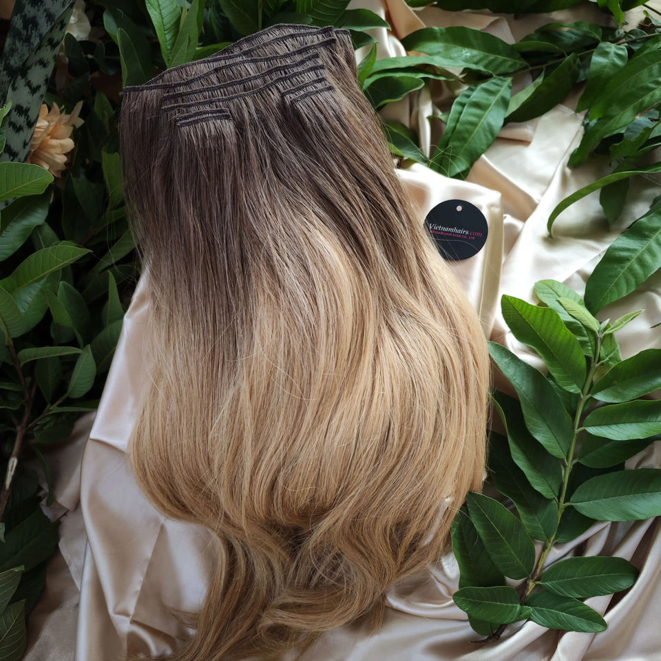 ผมบริสุทธิ์ทำจากหนังศีรษะแบบคลิปหนีบในเวียดนาม