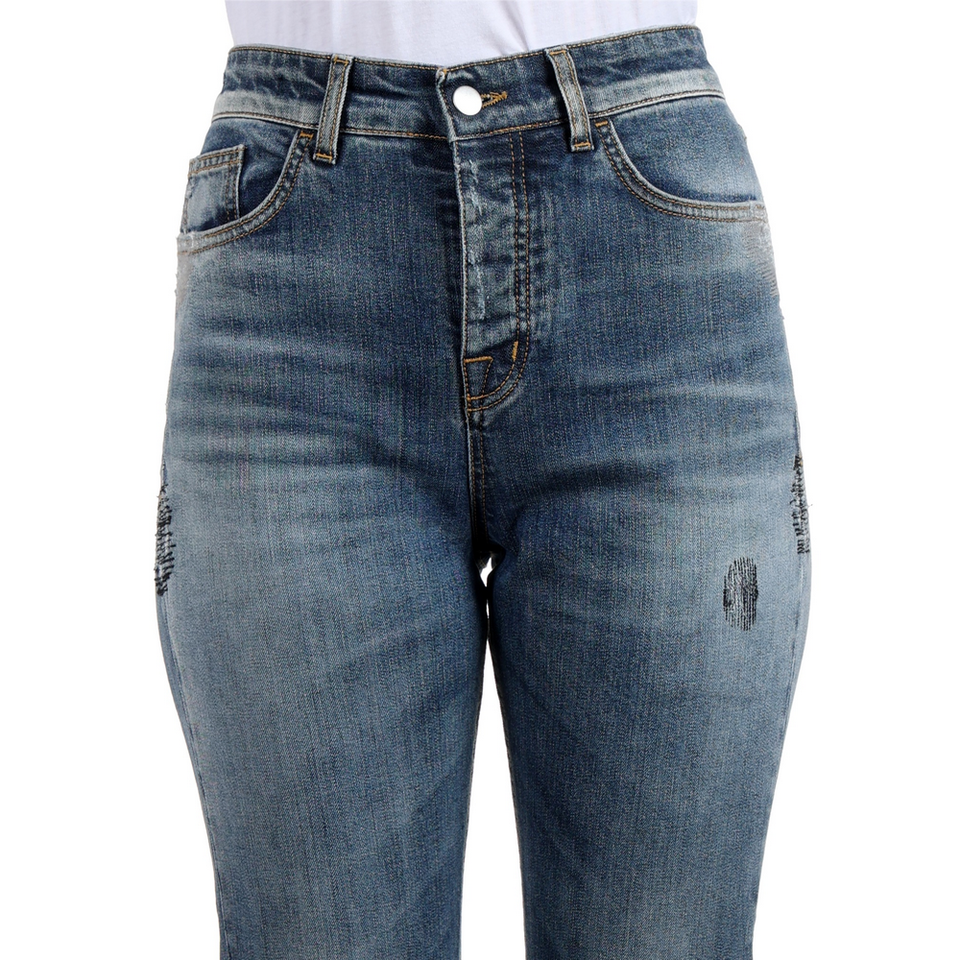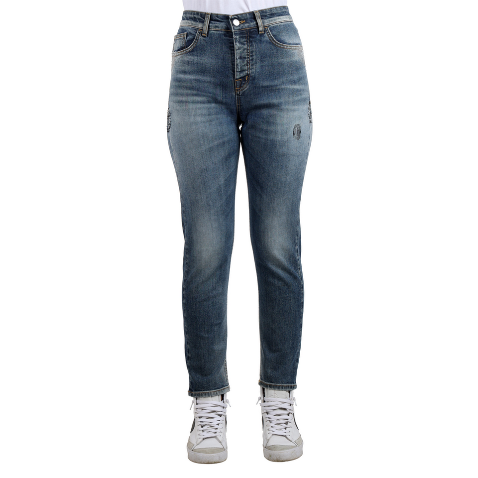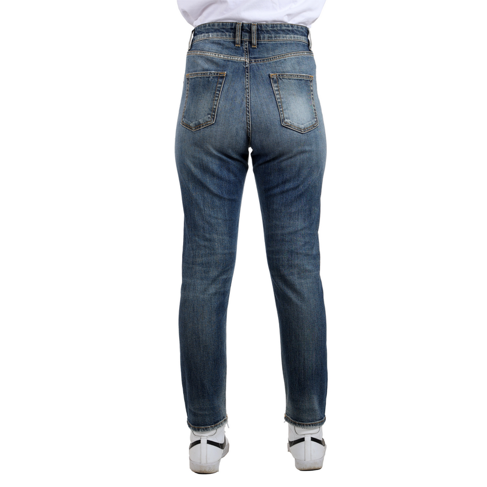 กางเกงยีนส์ดันทรงเข้ารูปสำหรับผู้หญิงทำจากอิตาลีผ้าคอตตอน98% 2% ทรงเข้ารูปมีซิป