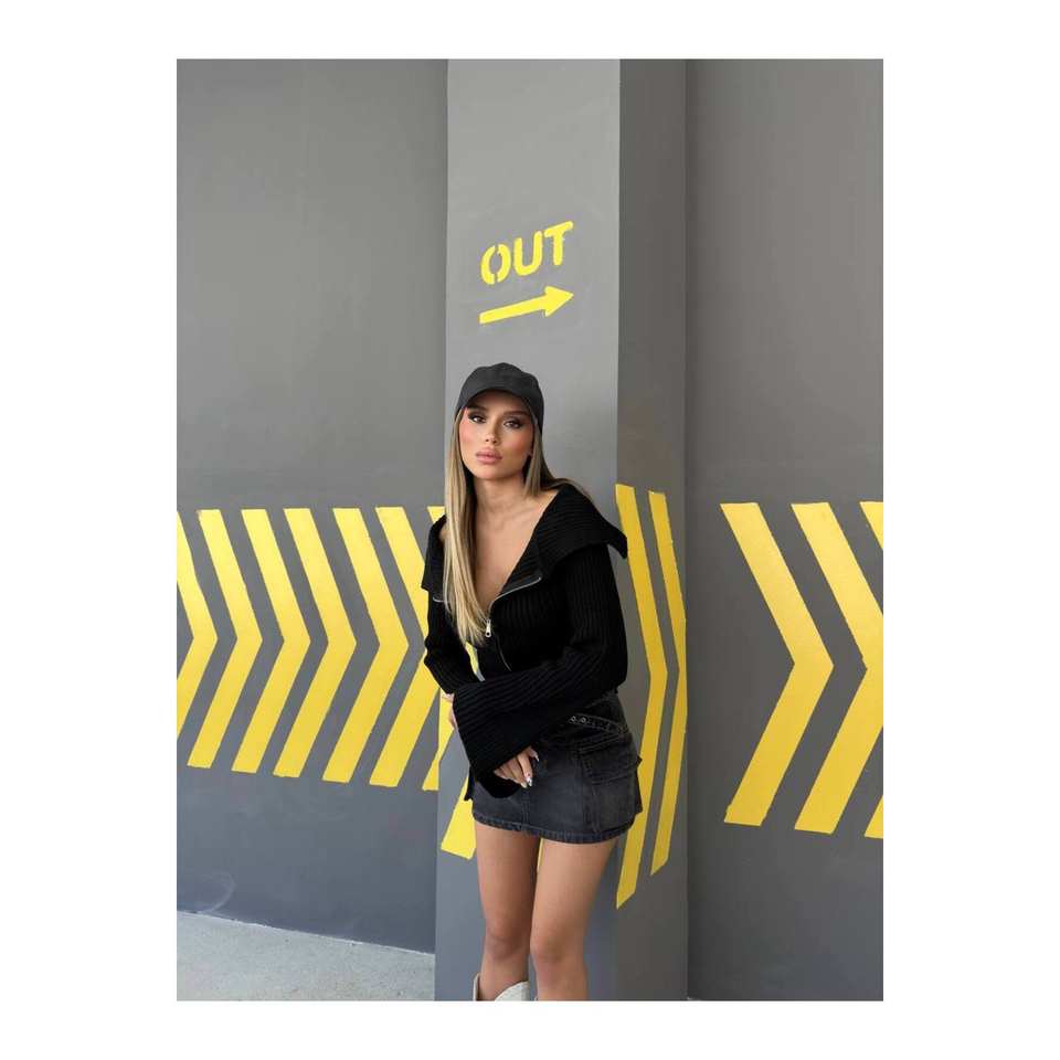 เสื้อคาร์ดิแกนถักแบบยั่งยืนสำหรับผู้หญิง แบรนด์ Madonna Collar พร้อมซิปคู่ แขนยาว ความยาวสั้น แฟชั่นเสื้อคลุมทันสมัย