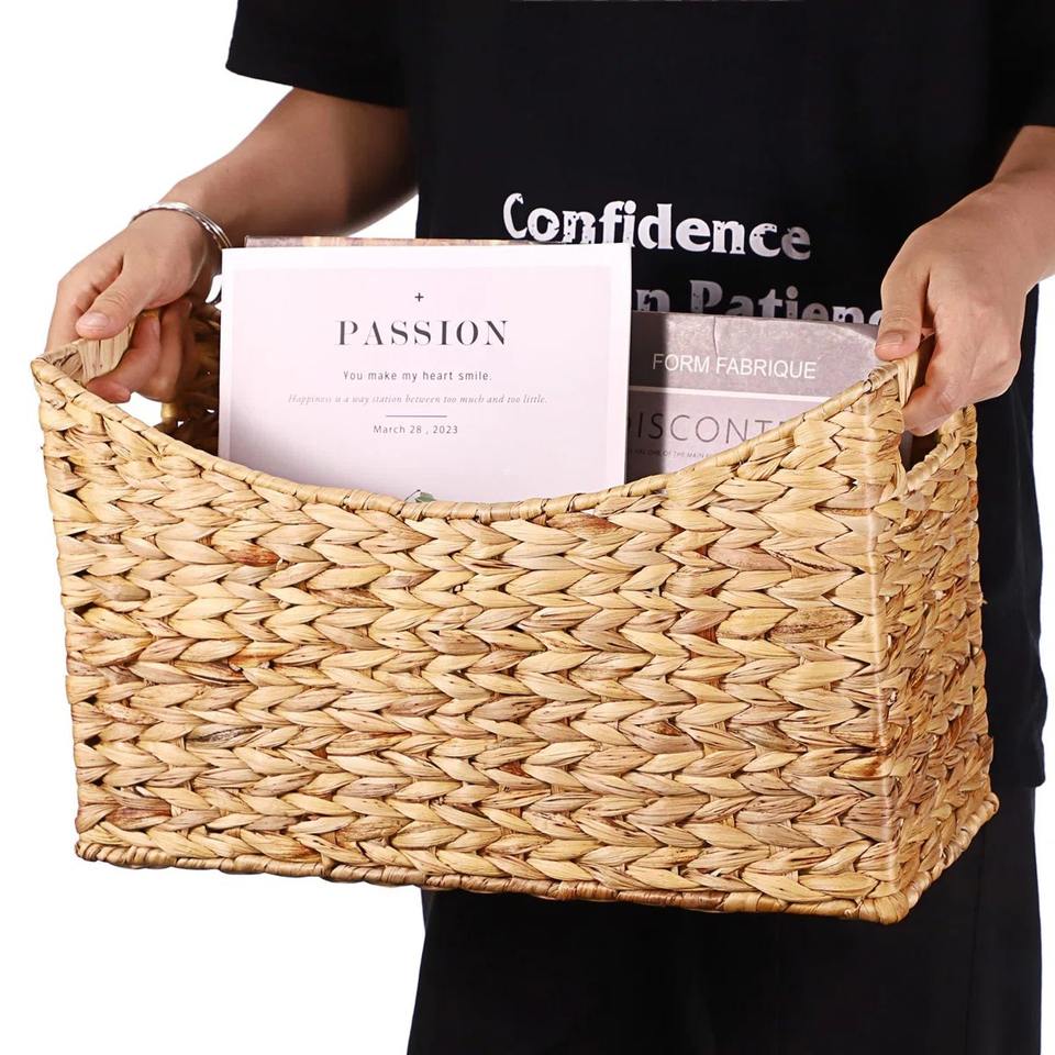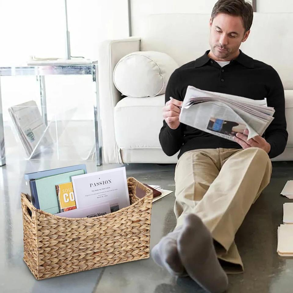 ชื่อ:ที่ใส่นิตยสาร ผักตบชวา ขอบทอ L17 x W6.5 x H9.8 นิ้ว
