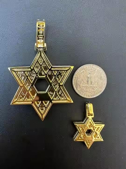 จี้และเครื่องประดับแสนสวยของ Magen Star David 925เครื่องทดสอบเพชรผ่านแร่เงินสเตอร์ลิงเครื่องทดสอบเพชรแบบฮิปฮอปโมอิสซานไนต์