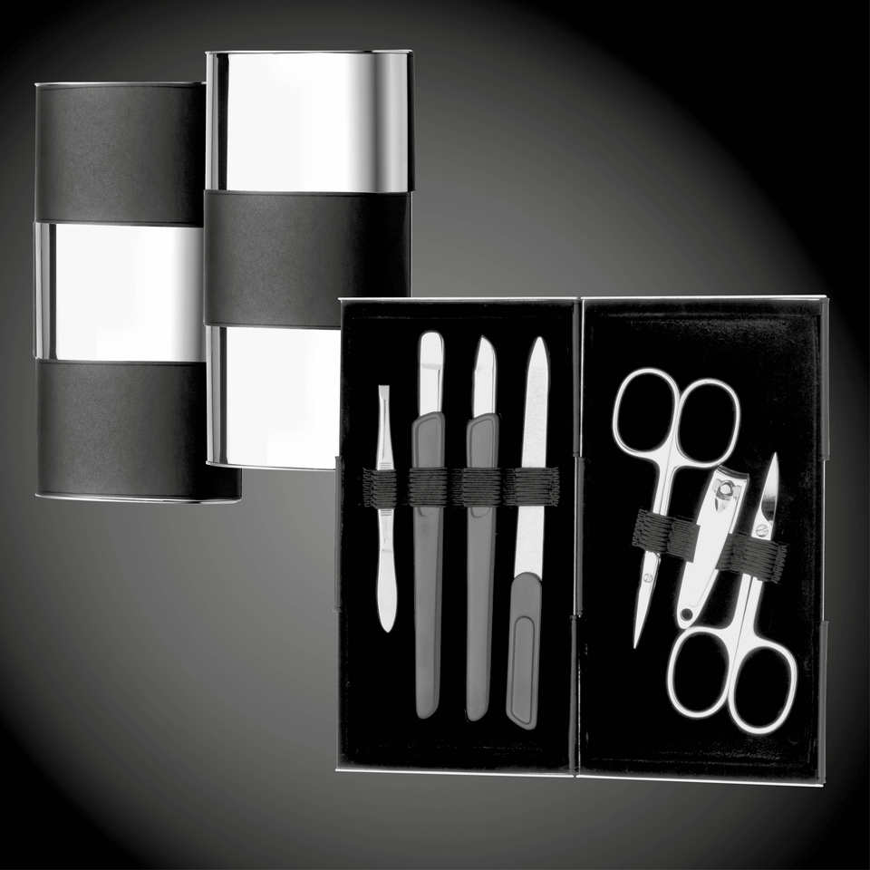 ชุดแต่งเล็บ7ชิ้นพร้อมโลโก้ตามสั่งสำหรับการดูแลส่วนบุคคลและศิลปะบนเล็บสำหรับทารกและนิ้วเท้าทำจากหนังและแก้วบรรจุในกล่อง