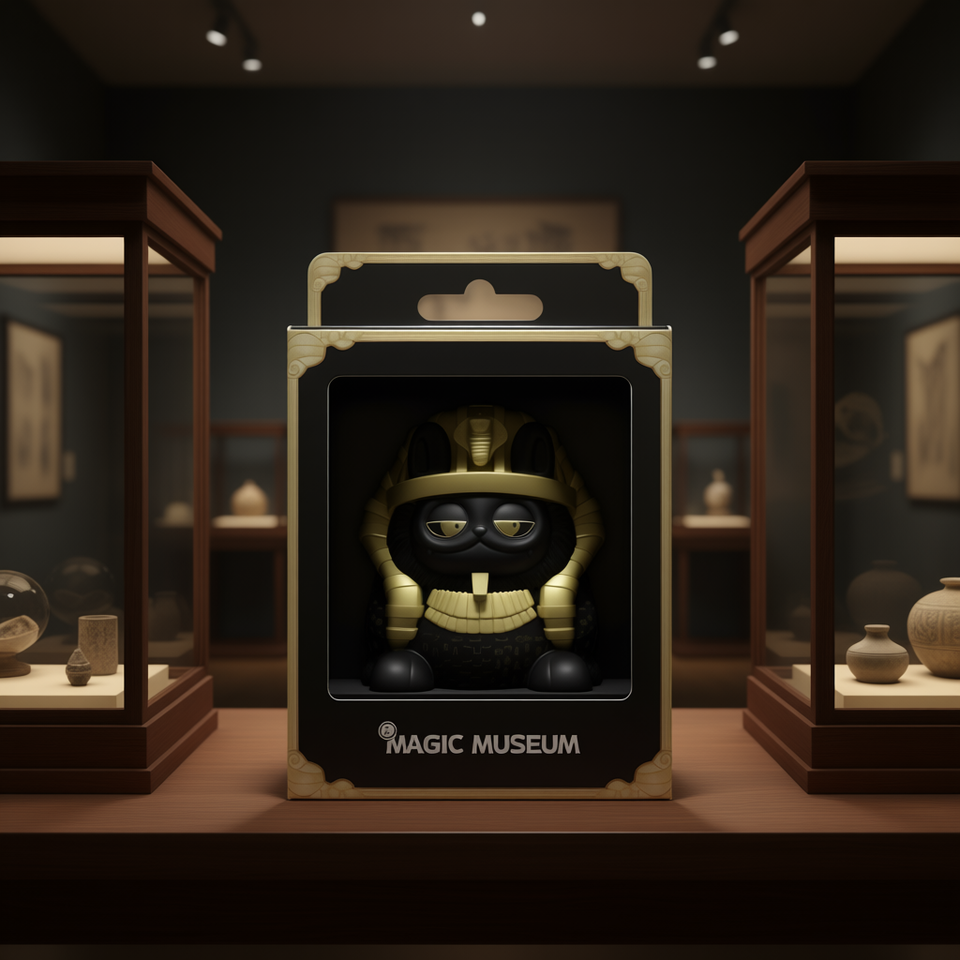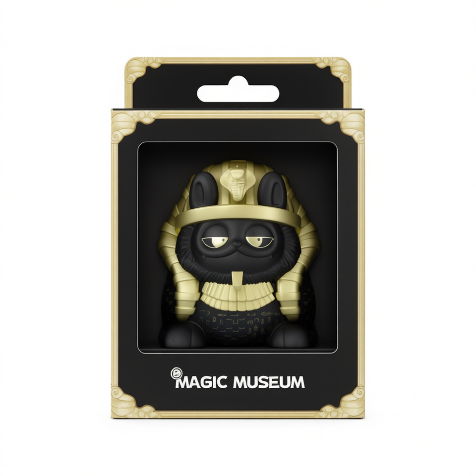 กล่องของขวัญรูปปั้นแมวฟาโรห์จากพิพิธภัณฑ์เวทมนตร์ บรรจุภัณฑ์ฟอยล์ทอง งานฝีมือ กระดาษแข็งรูปทรงสี่เหลี่ยมผืนผ้า ดีไซน์ระดับไฮเอนด์