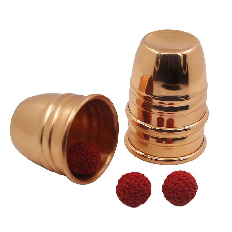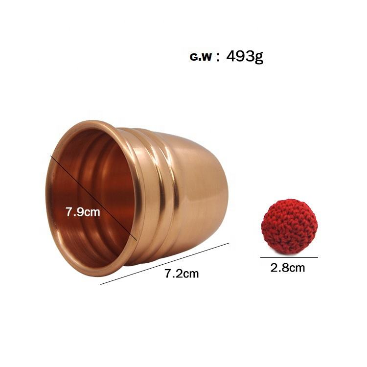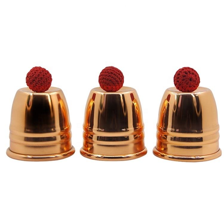 ชุดอุปกรณ์มายากลถ้วยโลหะและลูกบอลมืออาชีพ ประกอบด้วยถ้วยทองแดงเงาและลูกบอลถัก