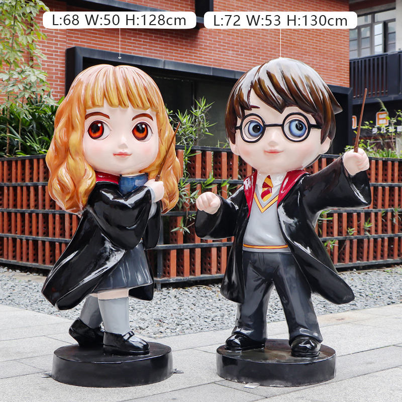 รูปปั้นไม้กายสิทธิ์รูปปั้นการ์ตูนตัวละครในสนามเด็กเล่นตกแต่งในร่มฮีโร่แอ็คชั่นในภาพยนตร์พ่อมดบาร์