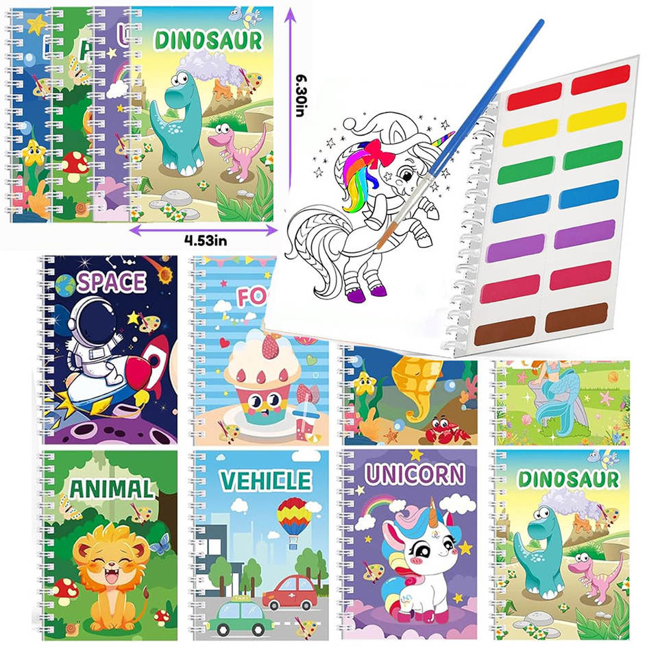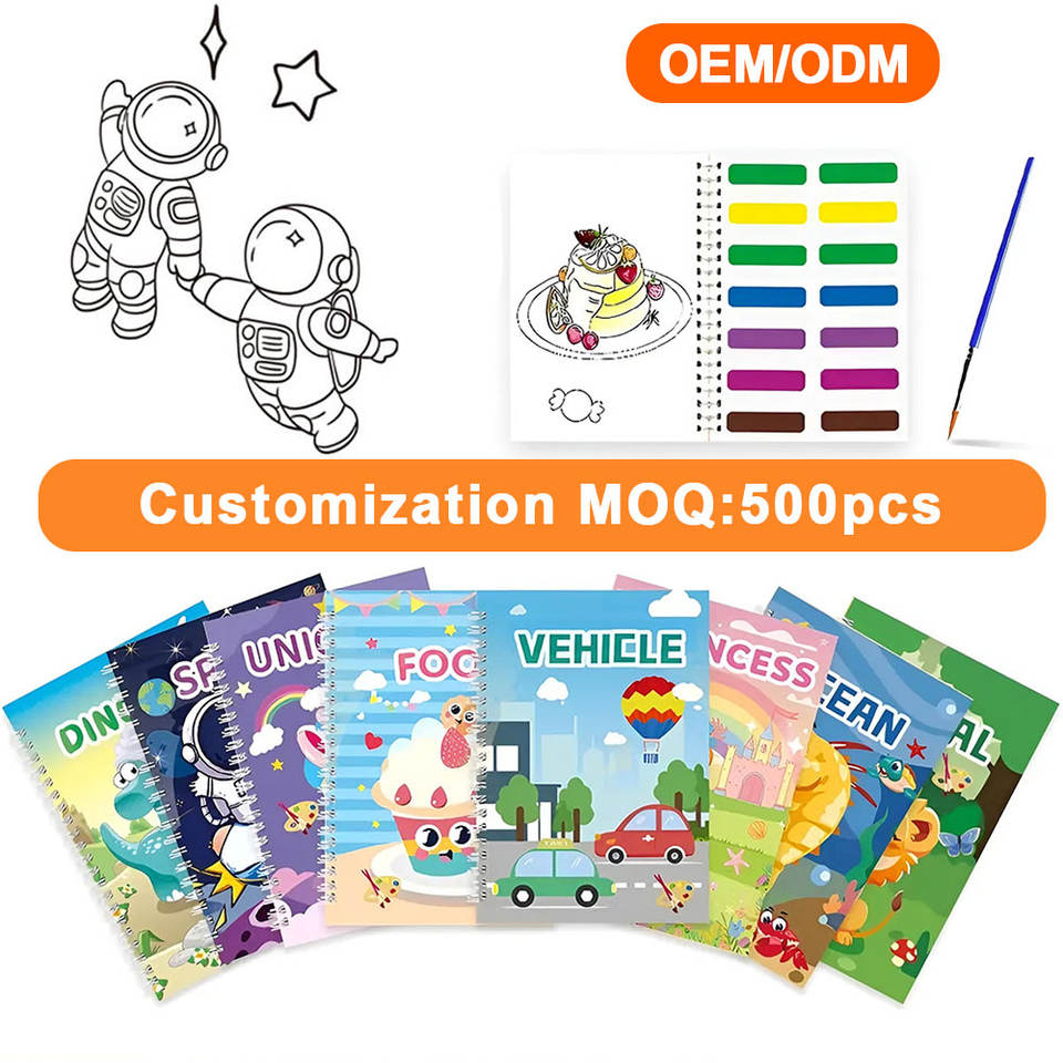 สมุดระบายสีน้ำวิเศษ พร้อมพู่กัน ลายการ์ตูนสัตว์ สมุดระบายสีแบบกำหนดเอง สำหรับเด็กเล็ก เสริมสร้างทักษะด้านศิลปะและการเรียนรู้