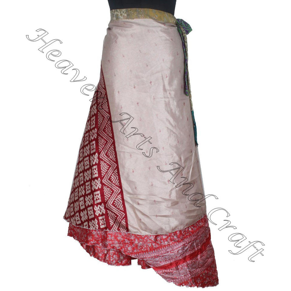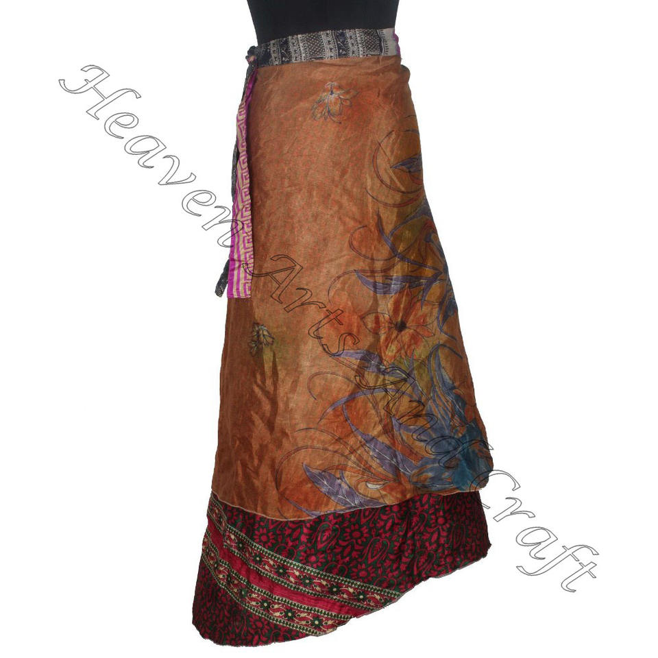 กระโปรงผ้าไหมส่าหรีรีไซเคิลสุดมหัศจรรย์ชุดเดรสแบบกลับด้านได้ชุดเดรสสไตล์โบฮีมีหลายสีใส่ในฤดูร้อนสวมใส่สบายแฟชั่นฮิปปี้