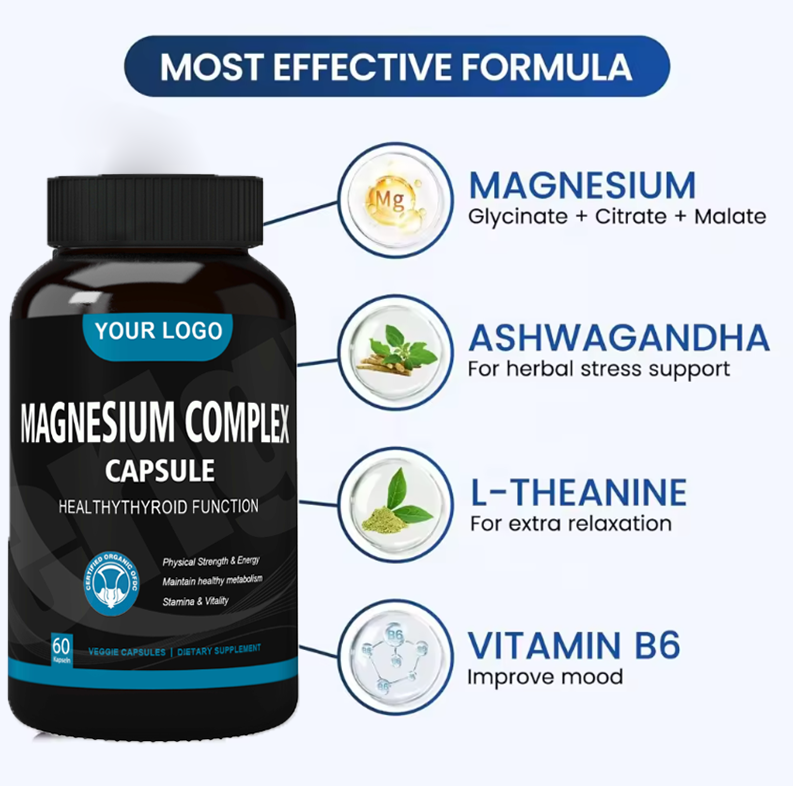 แคปซูลแมกนีเซียมเสริมวิตามินที่ซับซ้อน500มก. แมกนีเซียมคอมเพล็กซ์แคปซูล