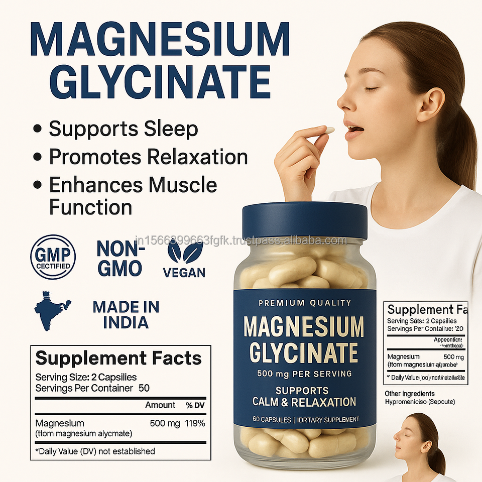 แมกนีเซียมไกลซิเนต500มก. อาหารเสริมสารต้านอนุมูลอิสระที่มีประสิทธิภาพพร้อมผงสกัดแมกนีเซียมไกลซิเนต