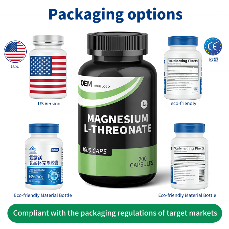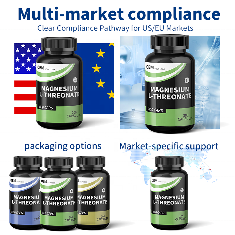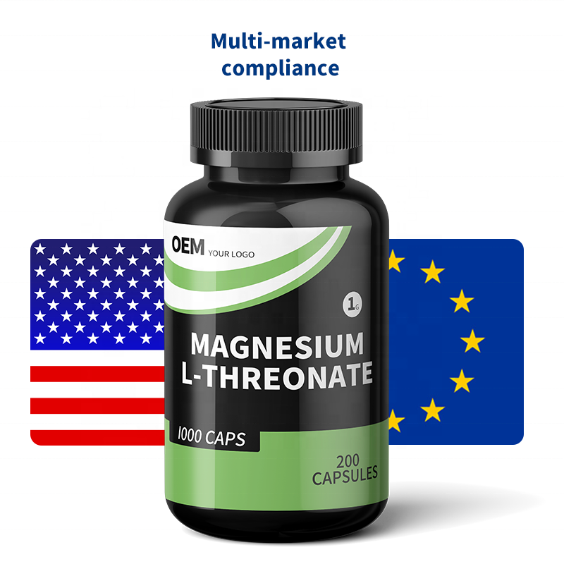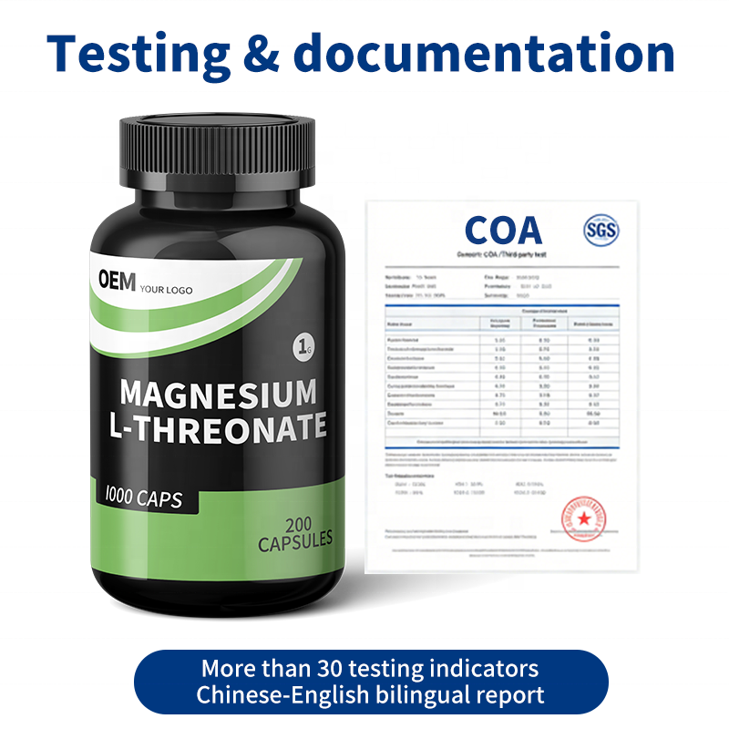 แคปซูลแมกนีเซียม แอล-ทรีโอเนต (ผ่านมาตรฐานหลายตลาด) พร้อมใบรับรอง COA/การทดสอบโดยบุคคลที่สาม มาตรฐาน USP/EU สำหรับผู้ประกอบการแบรนด์ระดับโลก
