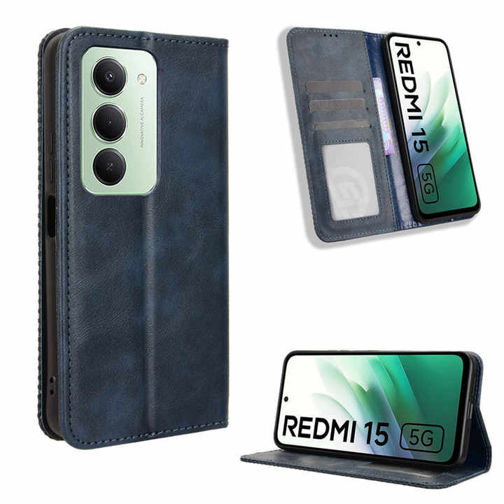 เคสโทรศัพท์หนังมีกระเป๋าเงินแบบหัวเข็มขัดแม่เหล็กย้อนยุคสำหรับ redmi 15 5g