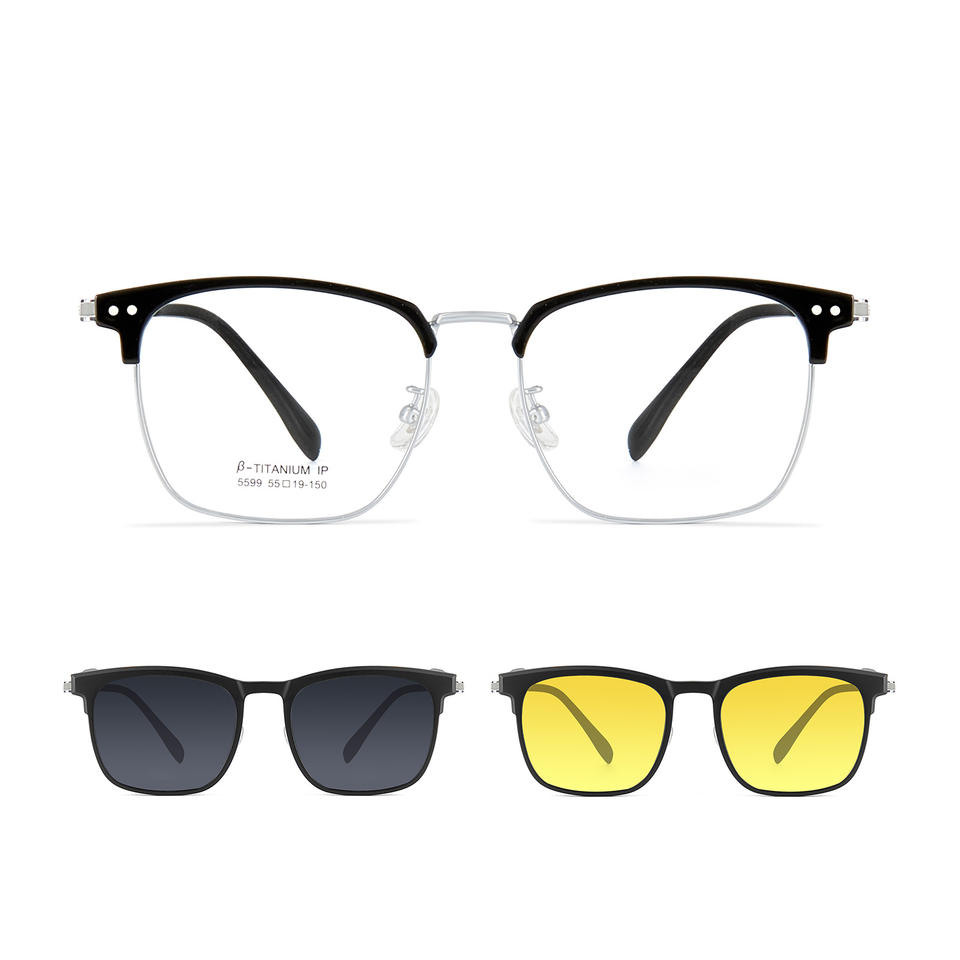 Magnetic Clip On Sunglasses For Men Business Style Pure Titanium Frame Lightweight Yellow Lens Summer 2024 Model 5599