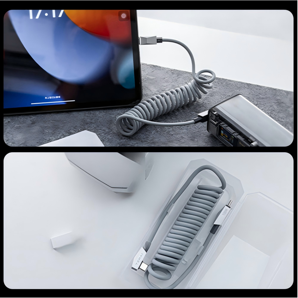Magnetic Coiled 100W USB-C Charging Cable for Tesla Model 3/Y/S/X & Cybertruck