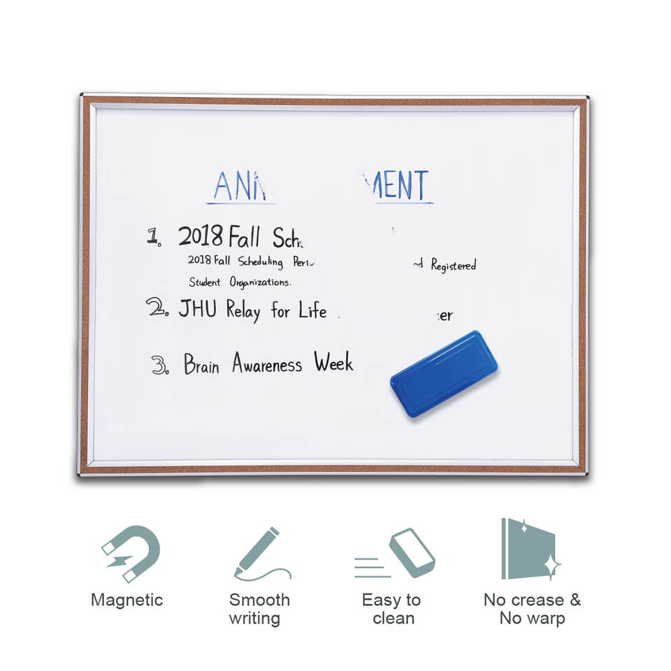 ไวท์บอร์ดลบได้แบบแม่เหล็กพร้อมกรอบเหล็กและจุกอลูมิเนียมทำความสะอาดและเขียนได้ง่าย