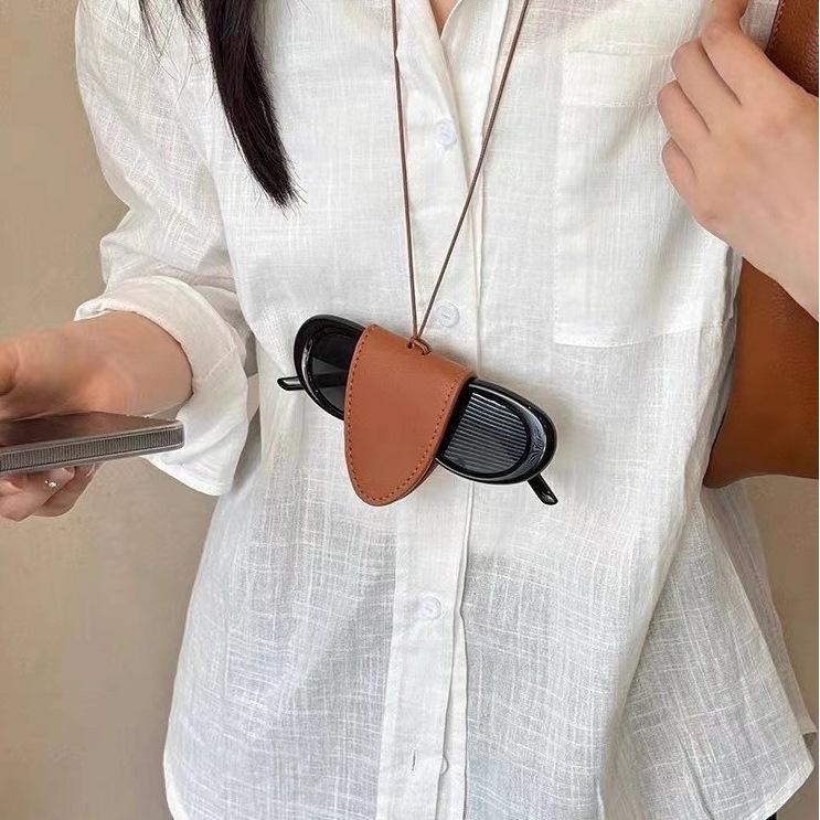 สายคล้องแว่นตาแบบแม่เหล็กพร้อมกล่องเก็บของสำหรับการเดินทางและการใช้งานกลางแจ้ง สีน้ำตาล สีดำ รูปทรงไม่สม่ำเสมอ